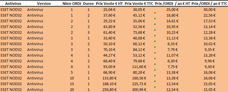 Les tarifs valables sont ceux indiqués sur la boutique ESET Steve InformaTic et consultables à l'aide du bouton ci-dessous ACHETER.